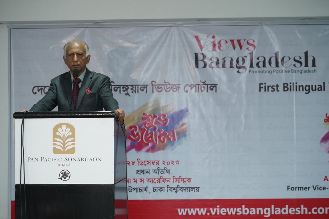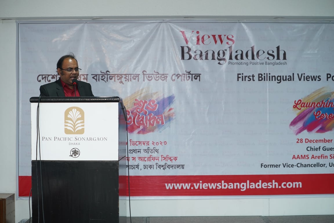 Views Bangladesh embarks on its auspicious journey, and in this special moment of today's event, I extend sincere greetings to the chief guest, the former Vice-Chancellor of Dhaka University, Professor A. A. M. S. Arefin Siddik, eminent personalities of the country, honored guests, honorable writers and all journalists and staff members of Views Bangladesh.