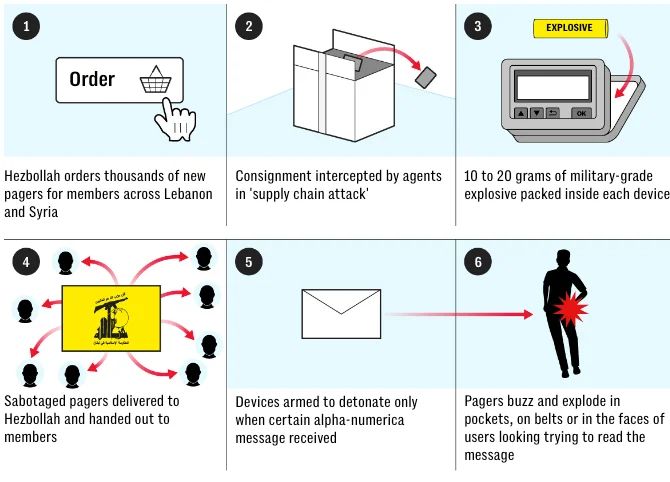 According to reports, the devices were triggered remotely by an “electronic message” that appeared to be from Hezbollah’s leadership. When the devices received this message, they buzzed, prompting users to press a button to stop the alert. However, pressing the button activated the hidden explosives, causing the devices to detonate.