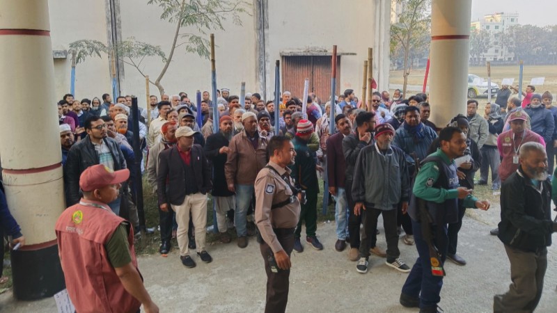 Voting for the 13th National Parliament Election and Referendum began at 7:30 am. A tour of various polling stations in the capital shows that voters have been standing in line to vote since morning. However, the presence of voters is comparatively low in the early morning. Members of various law enforcement agencies, including the armed forces, are providing security at the polling stations. Voting will continue until 4:30 pm.