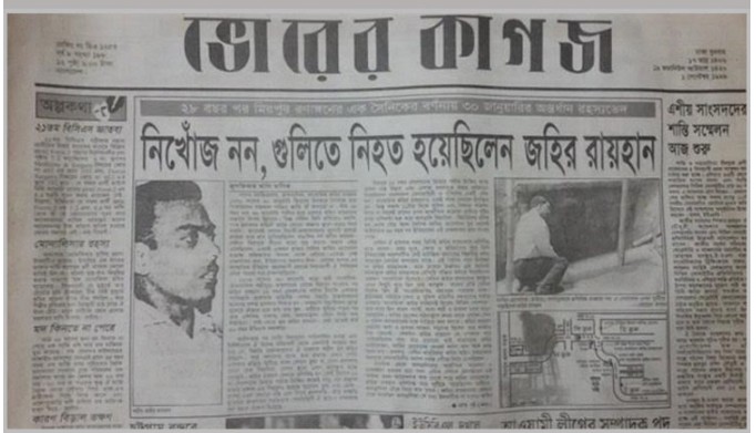 Murder of Zahir Raihan and investigation by Dainik Bhorer Kagoj