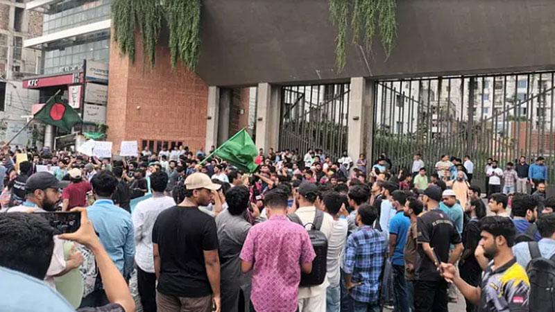 Students of BRAC University have joined the quota reform movement by blocking the road in Badda to press their one-point demand of quota reform in government jobs.