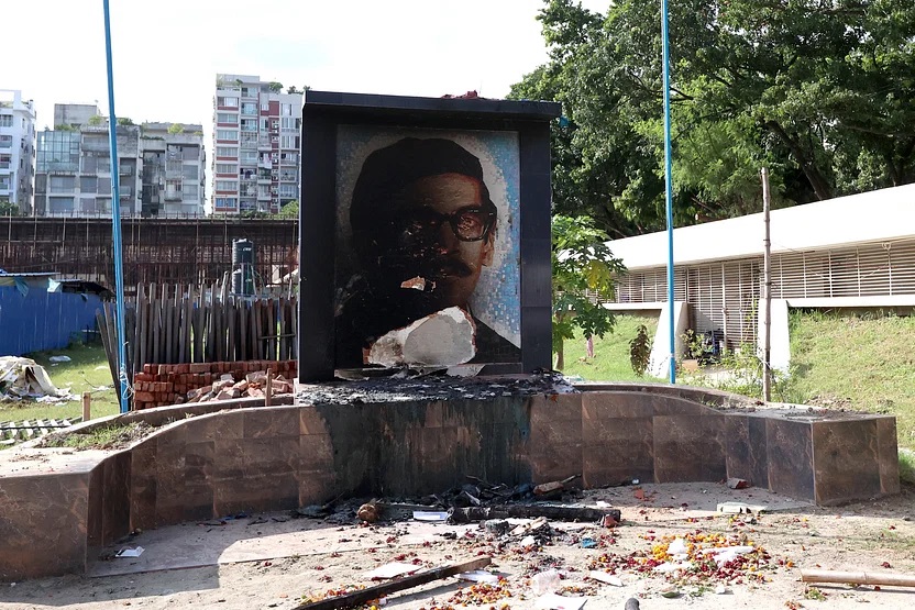 A portrait of Abahani Club founder Sheikh Kamal was set on fire